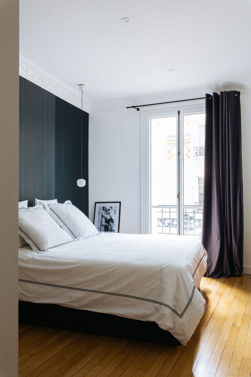 Situé dans le 92, cet appartement ancien de 85m2 avait été rénové par sa propriétaire au moment de son acquisition, tout en blanc. Elle a souhaité le personnaliser et nous a missionnés pour l’y aider (nous avions déjà collaboré sur un autre projet en 2011). C’est ainsi que l’entrée, la pièce à vivre et les deux chambres ont subi quelques transformations !